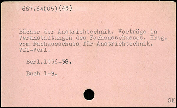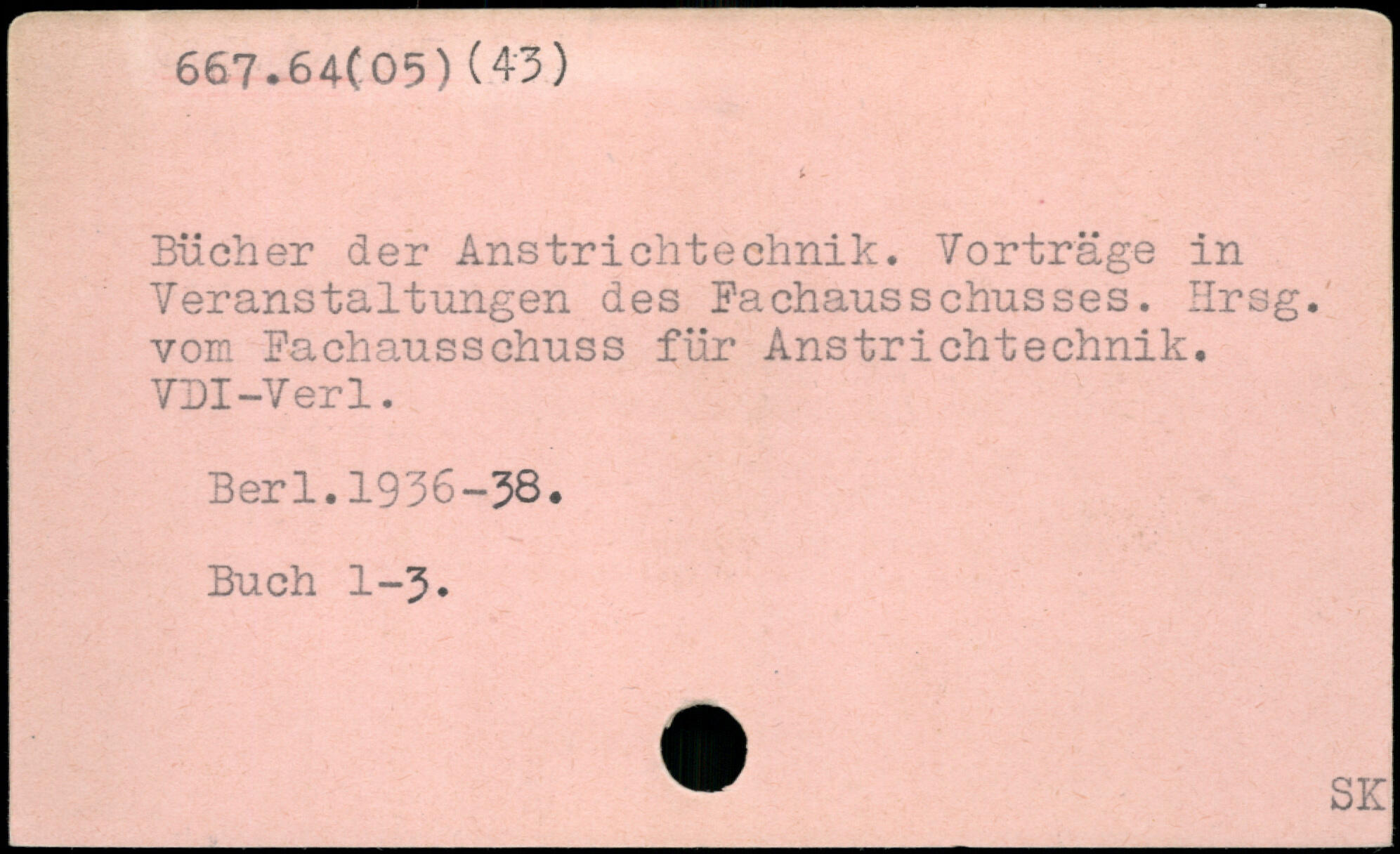 Bücher der Anstrichtechnik. Vorträge in Veranstaltungen des Fachausschusses. Hrsg, vom Fachausschuss für Anstrichtechnik. VDI-Verl. Berl.1936-58. Buch 1-5.