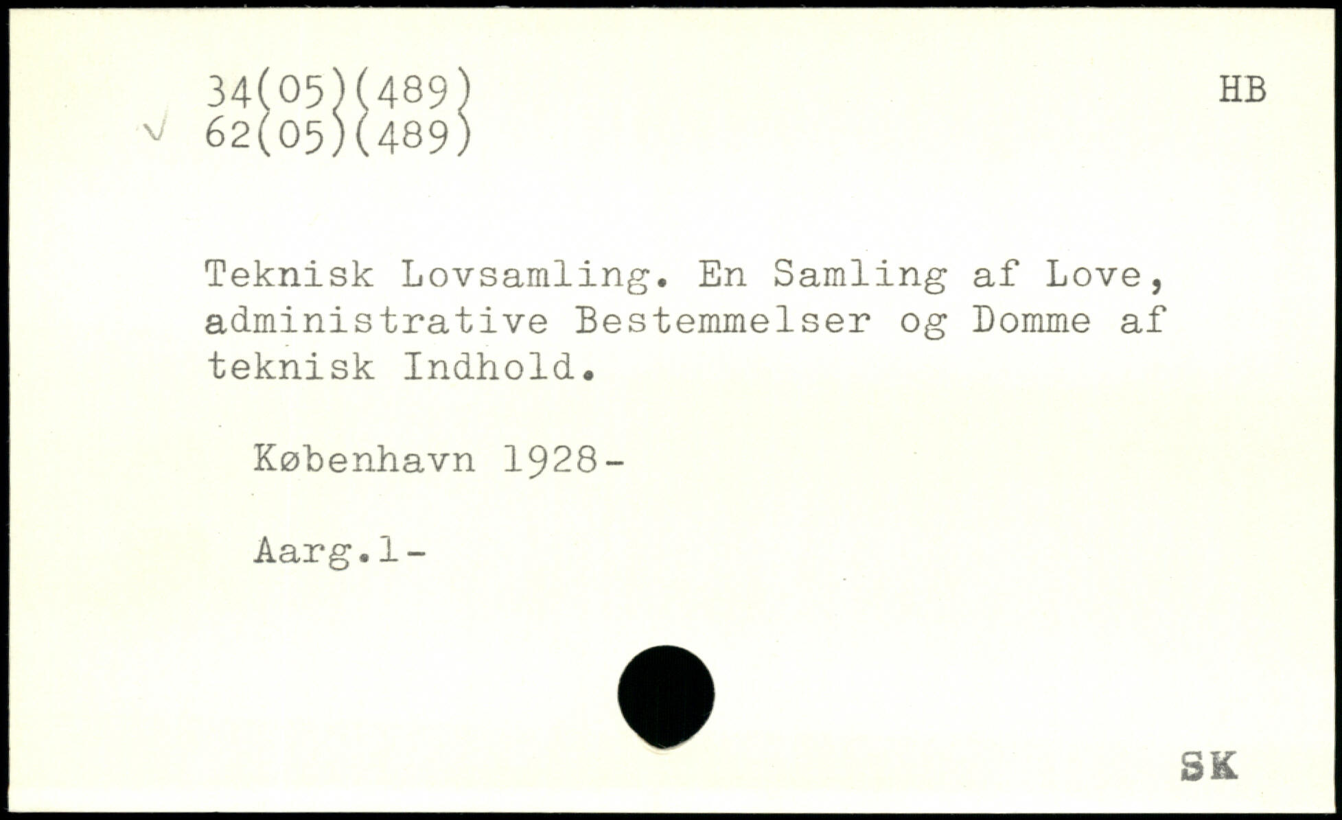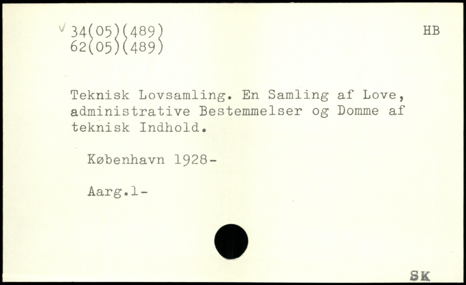 Teknisk Lovsamling. En Samling af Love, administrative Bestemmelser og Bomme af teknisk Indhold.