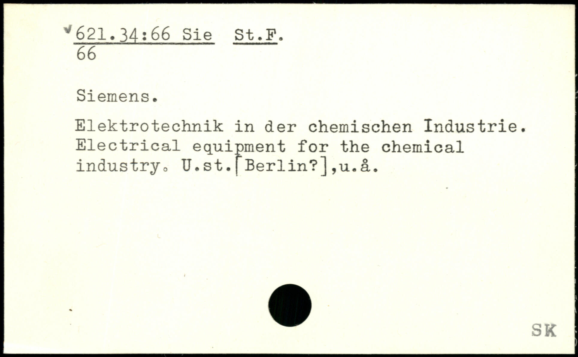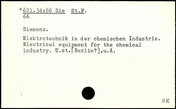 Elektrotechnik in der chemischen Industrie. Electrical equipment for the chemical industry,, U. st. f Berlin?] ,u.a.