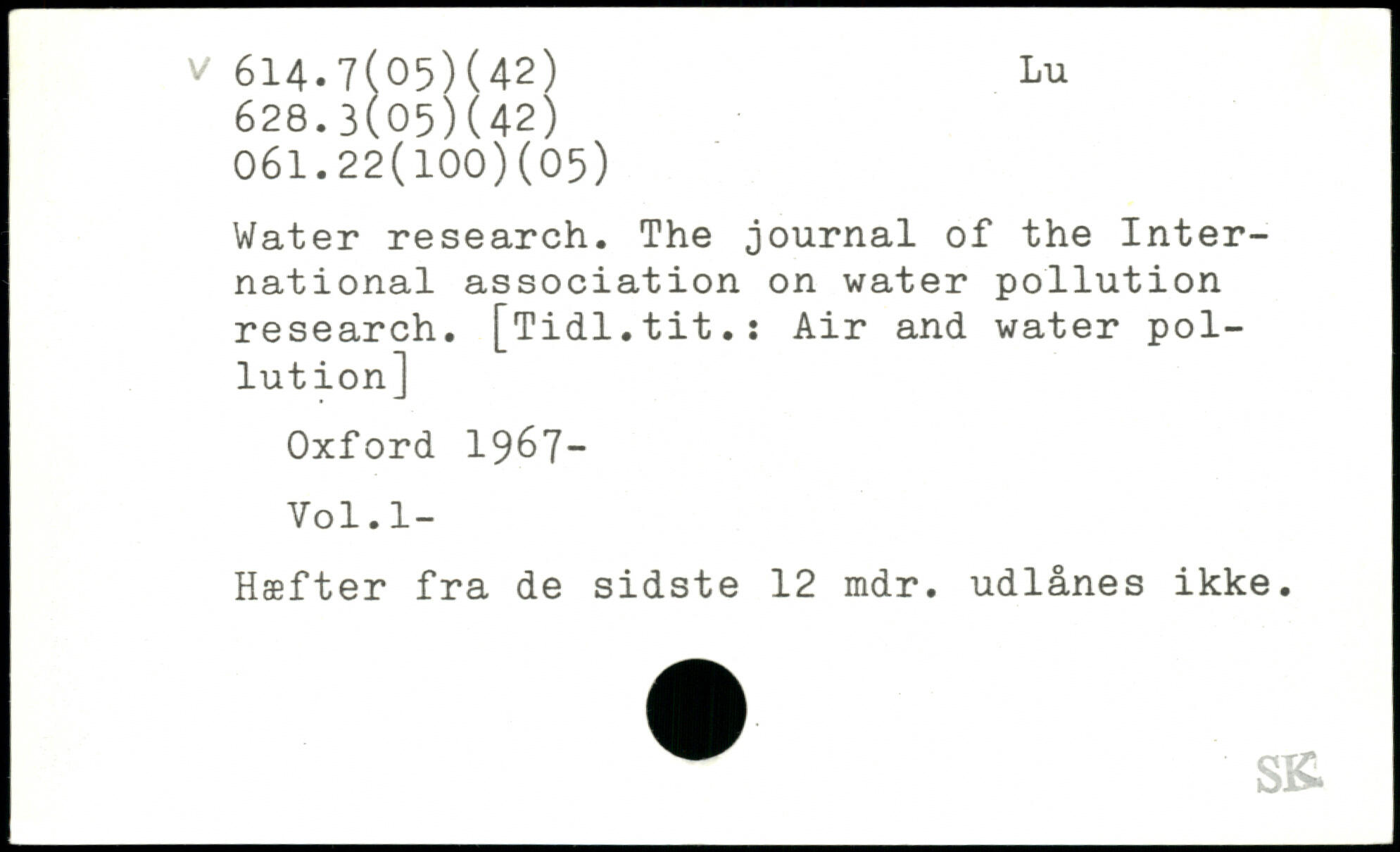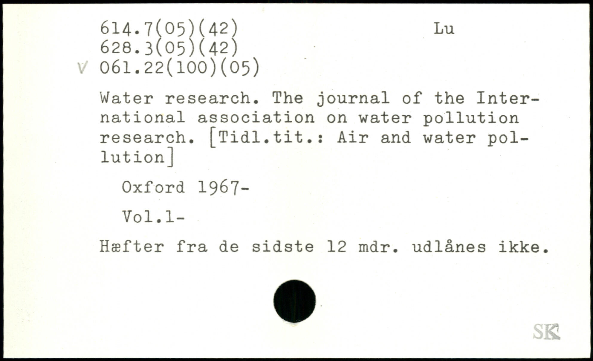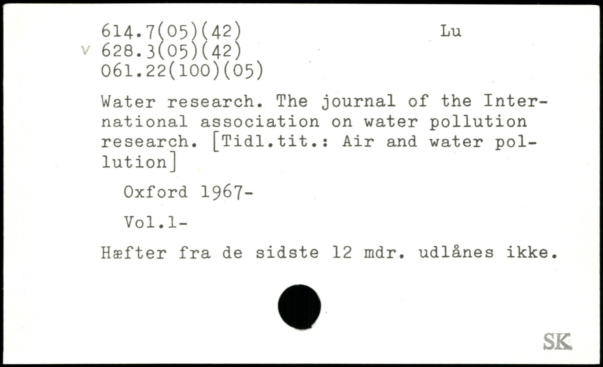 Water research. The journal of the International association on water pollution research. [Tidl.tit.: Air and water pollution]