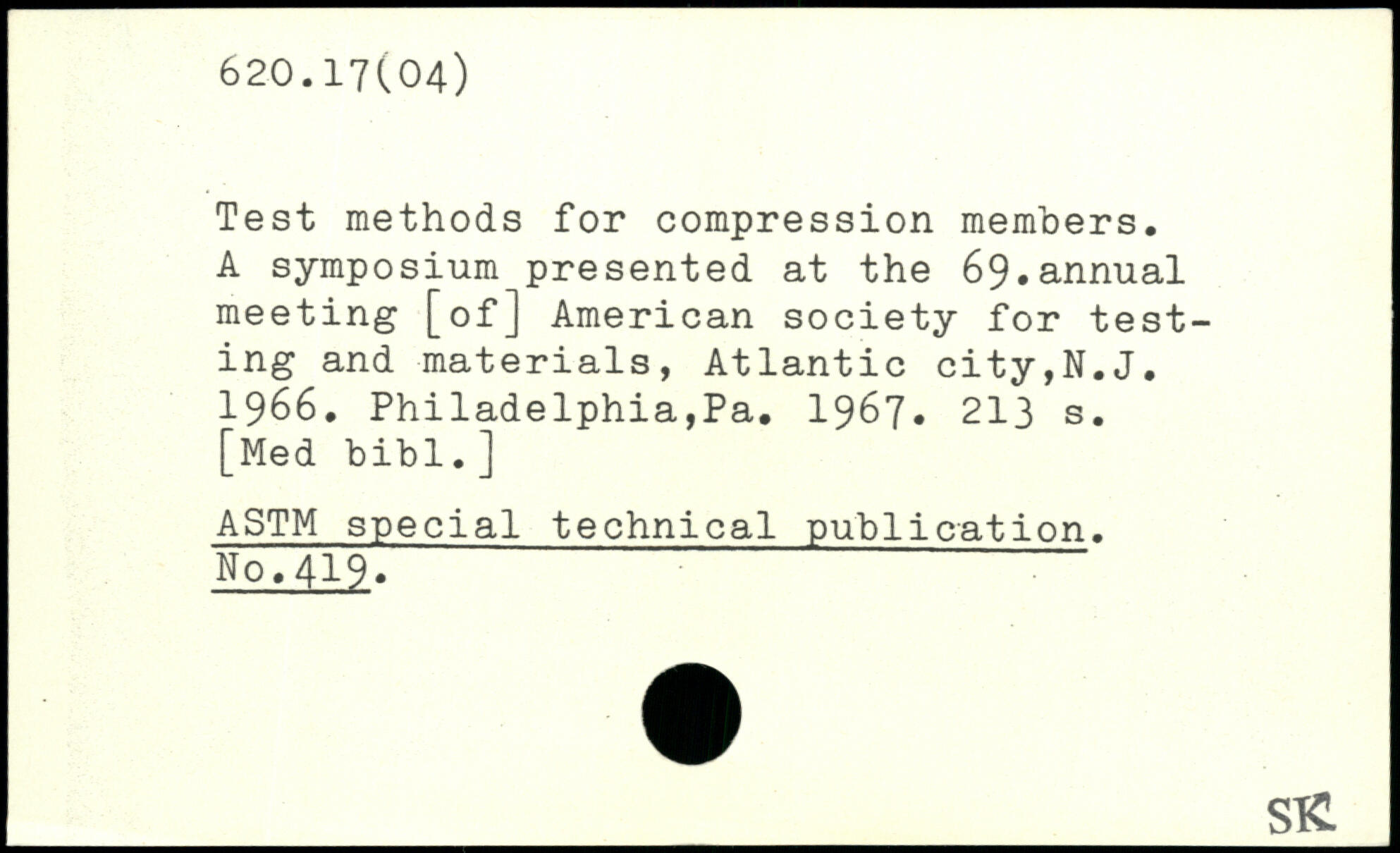 Test methods for compression members. A symposium presented at the 69.annual meeting [of] American society for testing and materials, Atlantic city,N.J. 1966. Philadelphia,Pa. 1967.