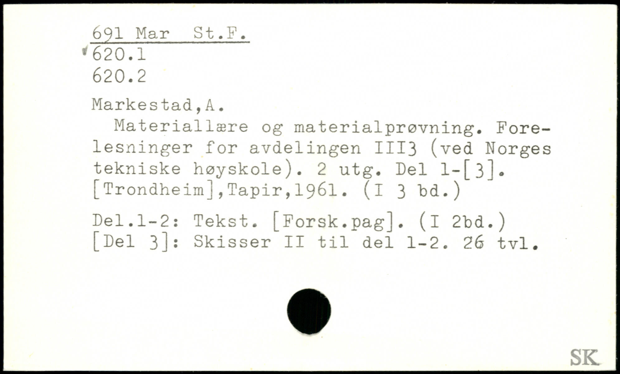 Materiallære og materialprøvning. Fore-lesninger for avdelingen 1113 (ved Norges tekniske høyskole). 2 utg. Del 1— [ 3]-[Trondheim],Tapir,1961. (i 3 hd.) Del.1-2: Tekst. [Forsk.pag]. (i 2hd.)