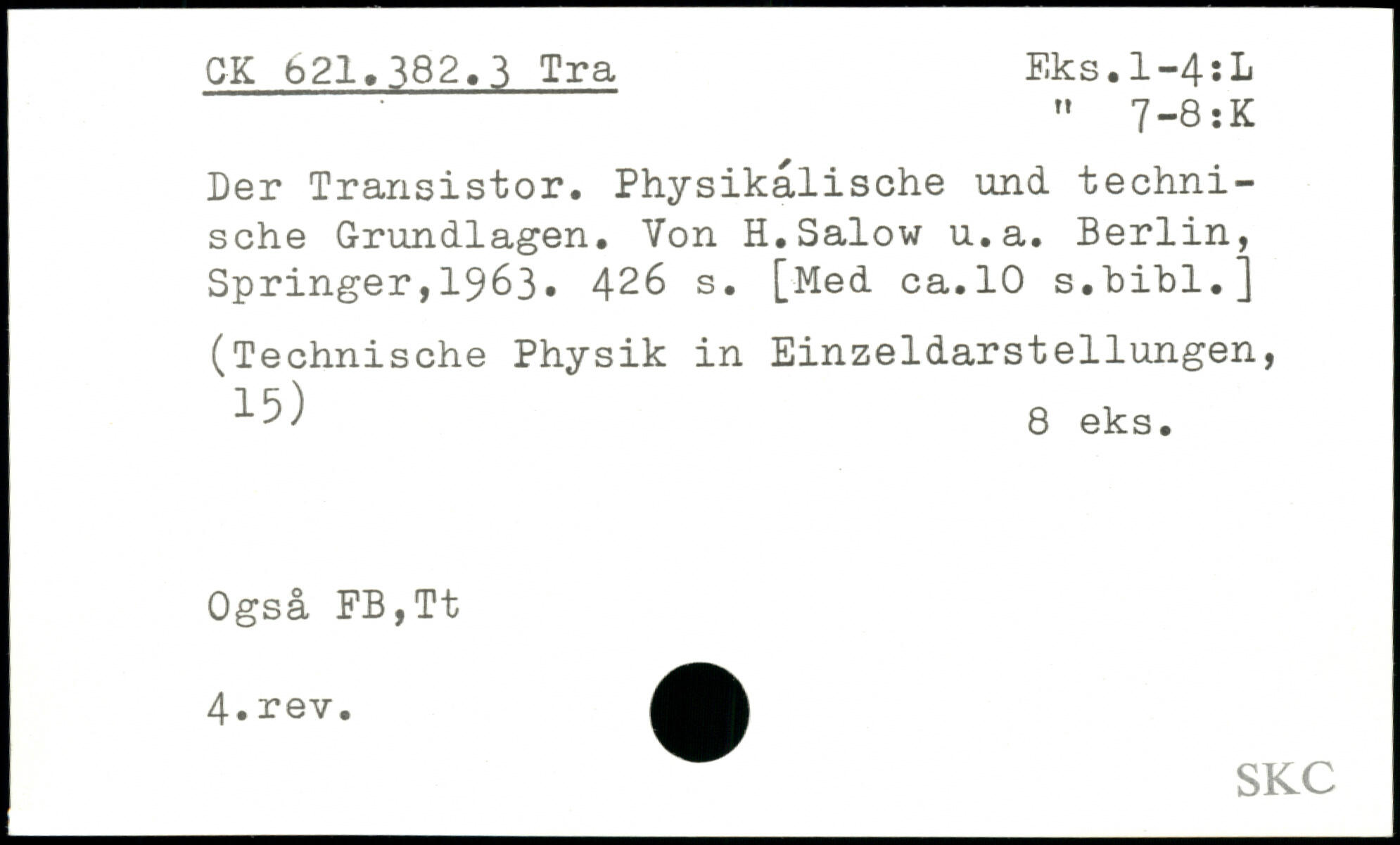 Der Transistor. Physikalische und technische Grundlagen. Yon H.Salow u.a.