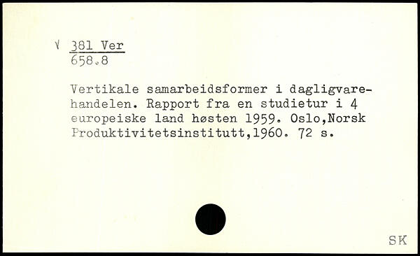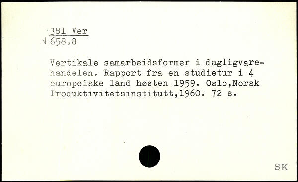 Vertikale samarbeidsformer i dagligvarehandelen. Rapport fra en studietur i 4 europeiske land høsten 1959