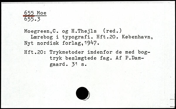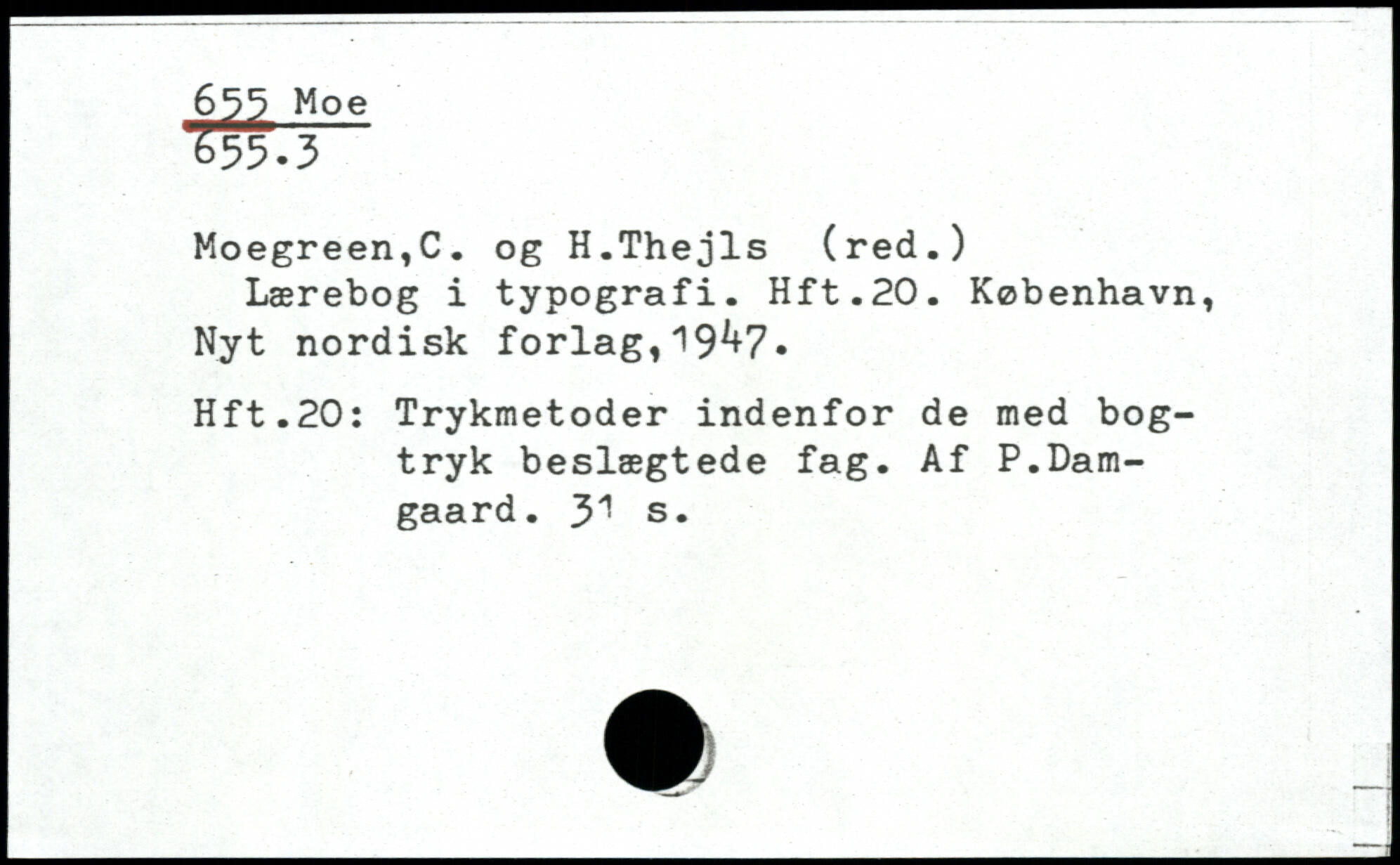 Lærebog i typografi. Hft.20. København, Nyt nordisk forlag,19^7. Hft.20: Trykmetoder indenfor de med bogtryk beslægtede fag. Af P.Dam-gaard.