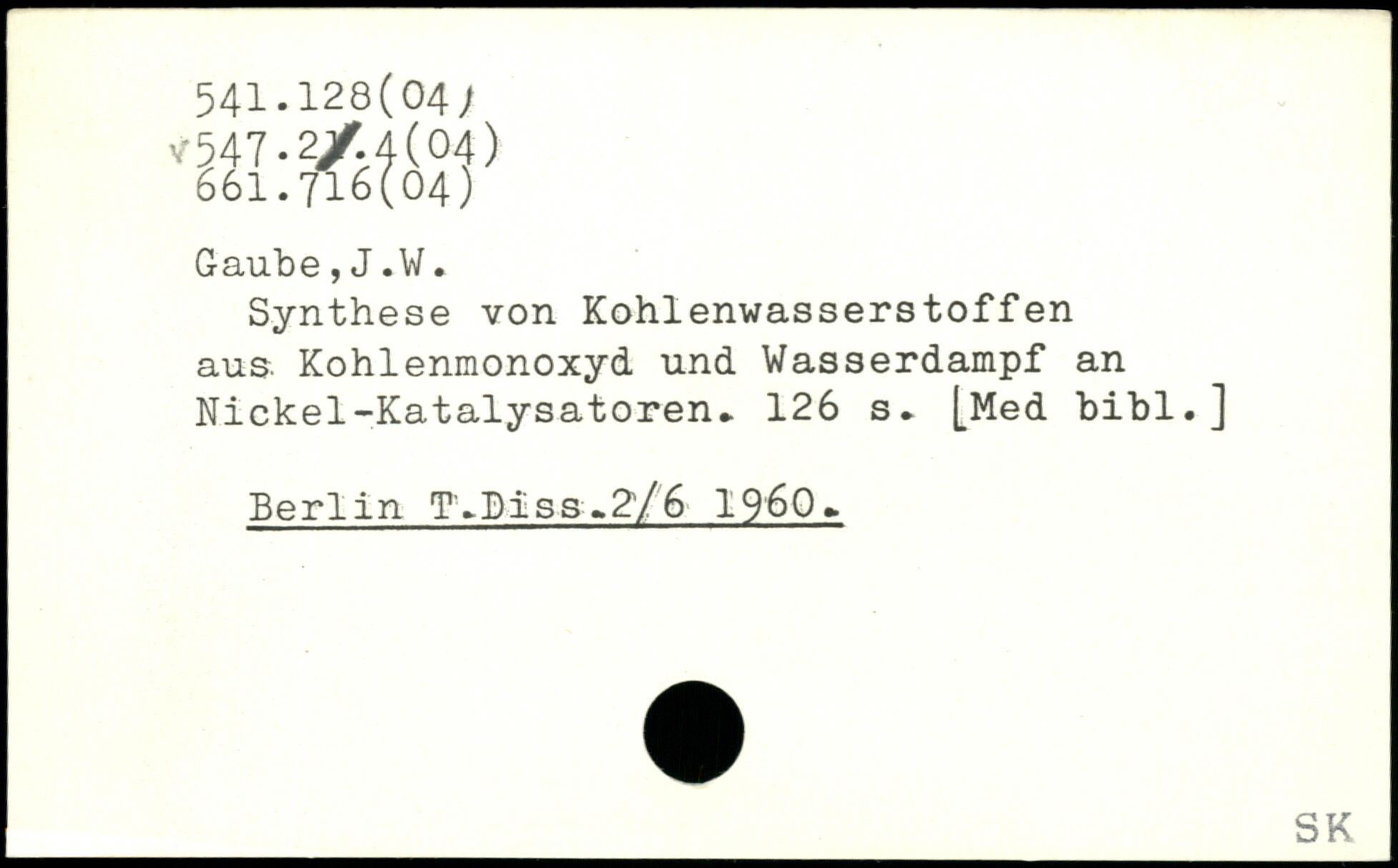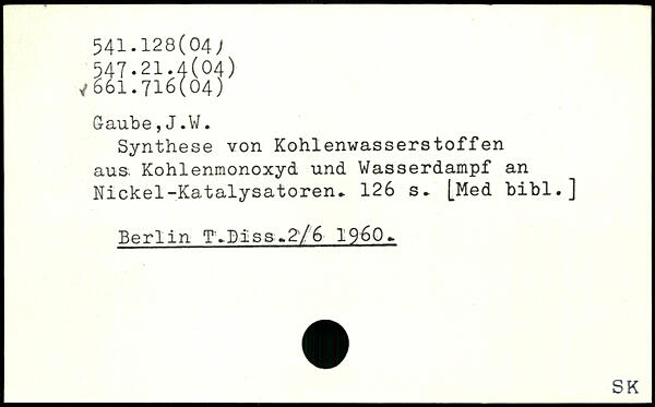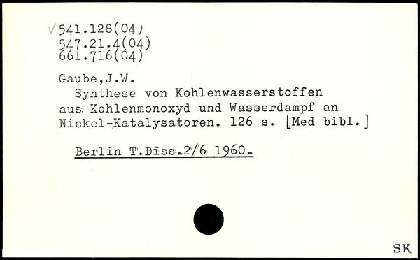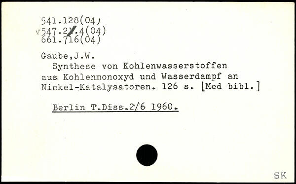 Synthese von Kohlenwasserstoffen aus. Kohlenmonoxyd und Wasserdampf an Nickel-Katalysatoren.