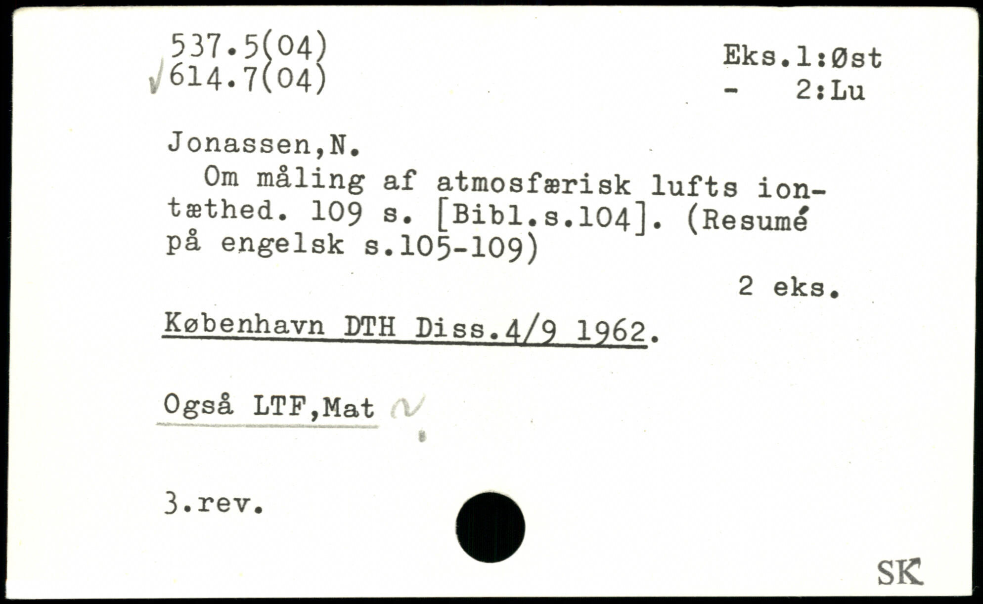 Om måling af atmosfærisk lufts ion-tæthed.