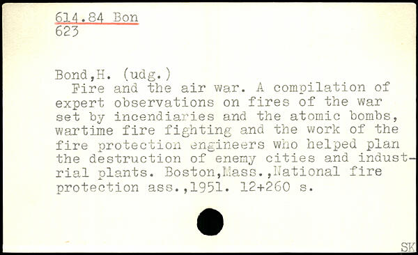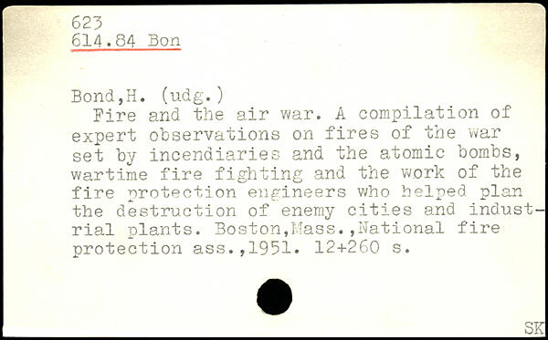 Fire and the air war. A compilation of expert observations on fires of the war set by incendiaries and the atomic bombs, wartime fire fighting and the work of the fire protection engineers who helped plan the destruction of enemy cities and industrial plants.