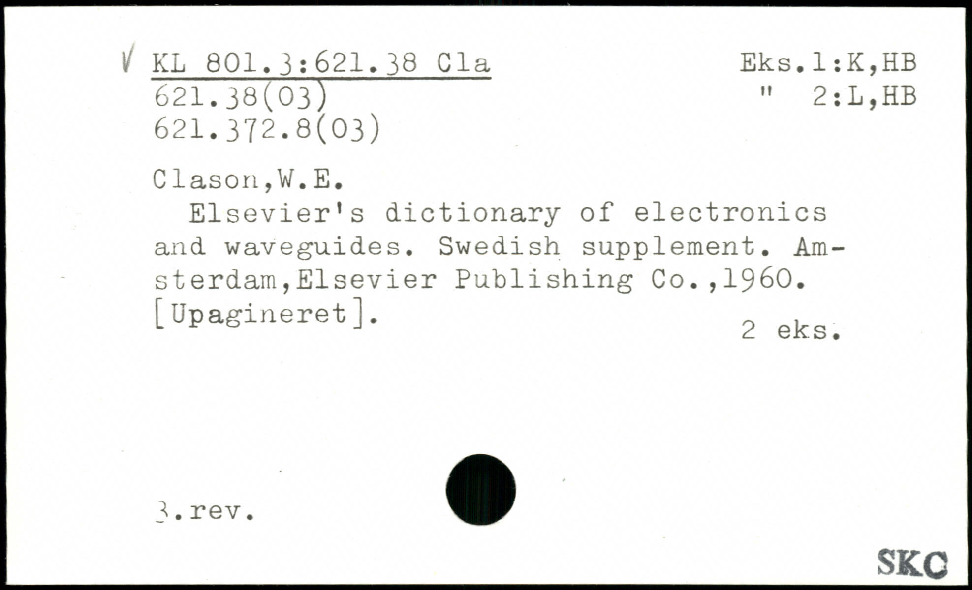 Elsevier’s dictionary of electronics and waveguides. Swedish supplement.