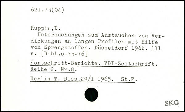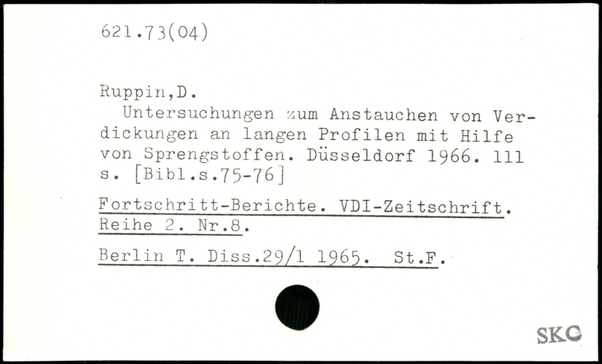 Untersuchungen zum Anstauchen von Verdickungen an langen Profilen mit Hilfe von Sprengstoffen. Düsseldorf 1966.