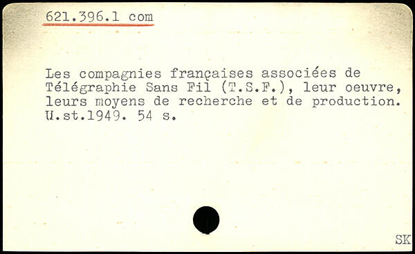 Les compagnies françaises associées de Télégraphie Sans Pii (T.S.F.), leur oeuvre, leurs moyens de recherche et de production. U.st.1949.