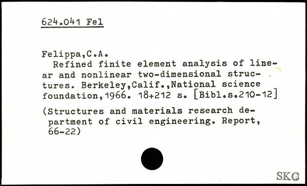 Refined finite element analysis of linear and nonlinear two-dimensional structures, Berkeley,Calif.,National science foundation,19^6