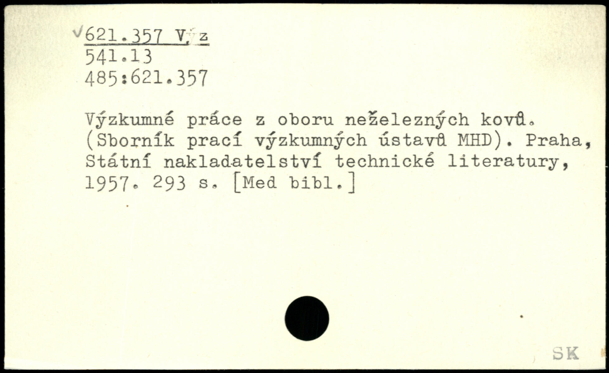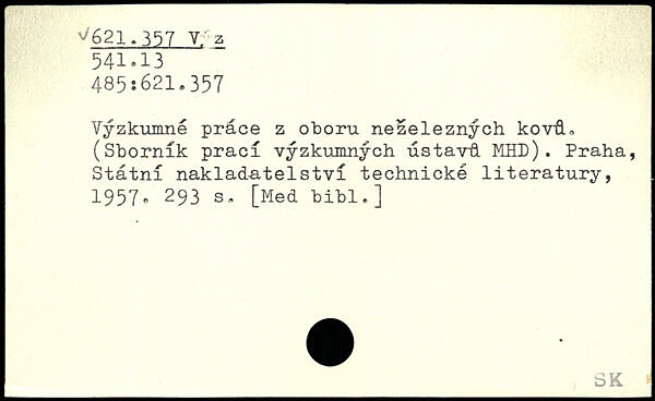 Vyzkumnê prâce z oboru nezeleznych kovâ. (Sbornik praci vÿzkumnÿch ustavfL MHD). Praha, Statnf nakladatelstvî technické literatury, 1957.