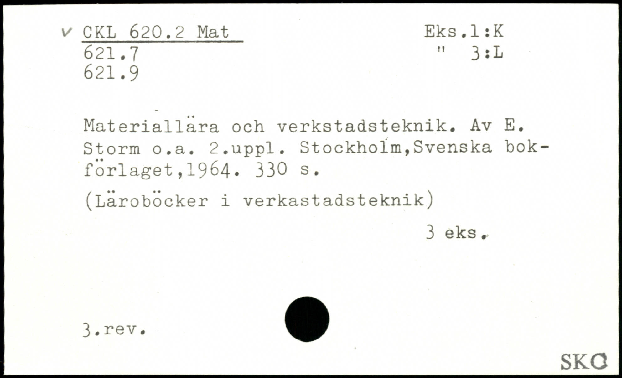 Materiallara och verkstadsteknik. Av E. Storm o.a.