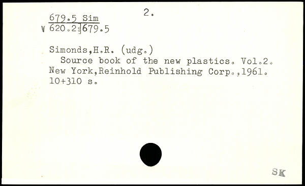 Source book of the new plastics, Vo1020 hew York,Reinhold Publishing Corp0,1961o