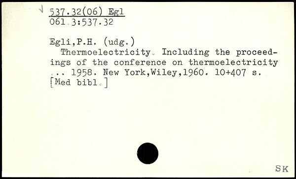 Thermoelectricity. Including the proceedings of the conference on thermoelectricity ... 1958.