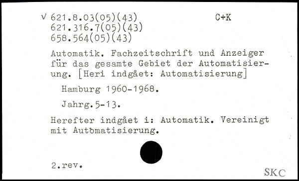 Automatik. Fachzeitschrift und Anzeiger für das gesamte Gebiet der Automatisierung. [Heri indgået: Automatisierung]