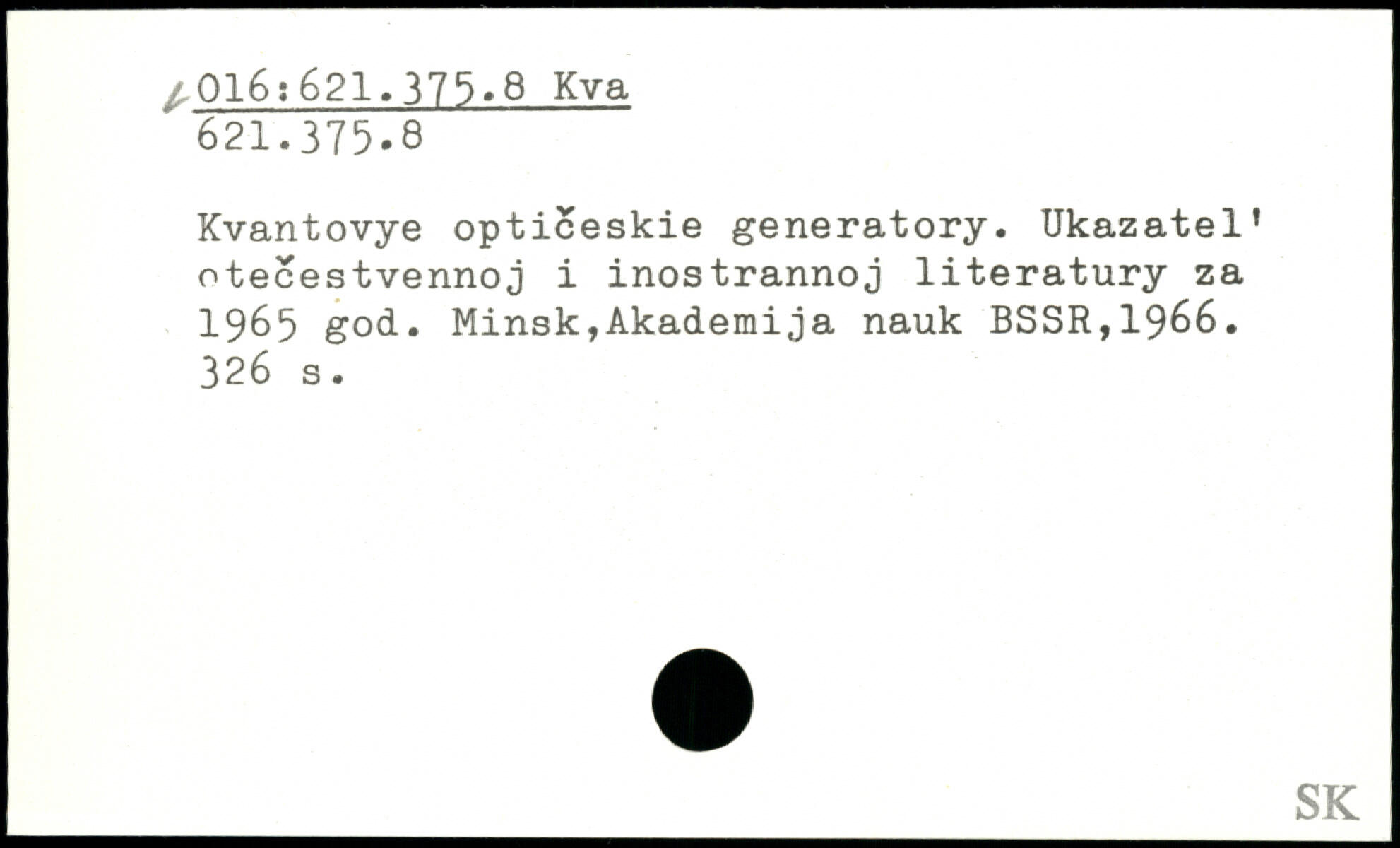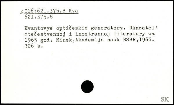 Kvantovye opticeskie generatory. Ukazatel’ otecestvennoj i inostrannoj literatury za 1965 god.