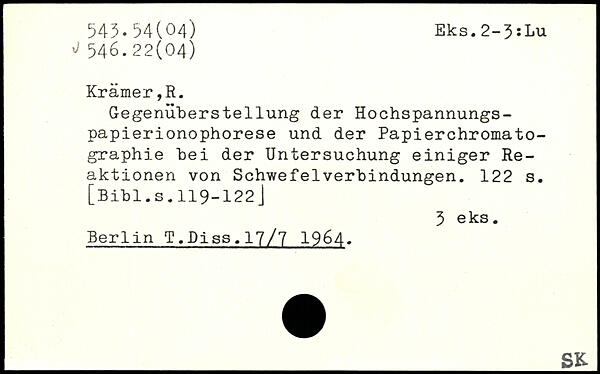 Gegenüberstellung der Hochspannungs-papierionophorese und der Papierchromatographie bei der Untersuchung einiger Reaktionen von Schwefelverbindungen.