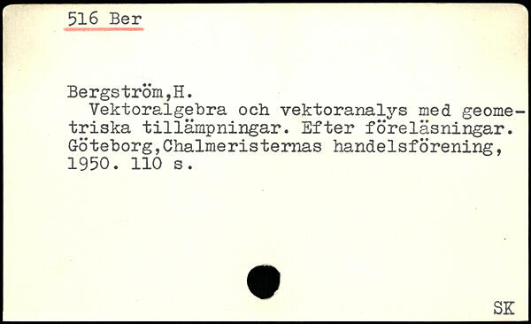 Vektoralgebra och vektoranalys med geometriska tillämpningar. Efter föreläsningar.