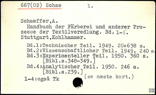 Handbuch der Färberei und anderer Prozesse der Textilveredlung. Bd. 1-^f. Stuttgart,Kohlhammer. Bd.l:Technischer Teil. 1949.