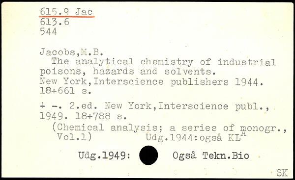 The analytical chemistry of industrial poisons, hazards and solvents. New York,Interscience publishers 1944.