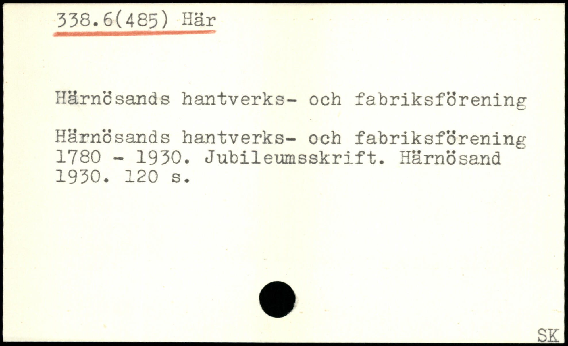 Härnösands hantverks- och fabriksförening Härnösands hantverks- och fabriksförening 1780 - 1930. Jubileumsskrift. Härnösand 1930.