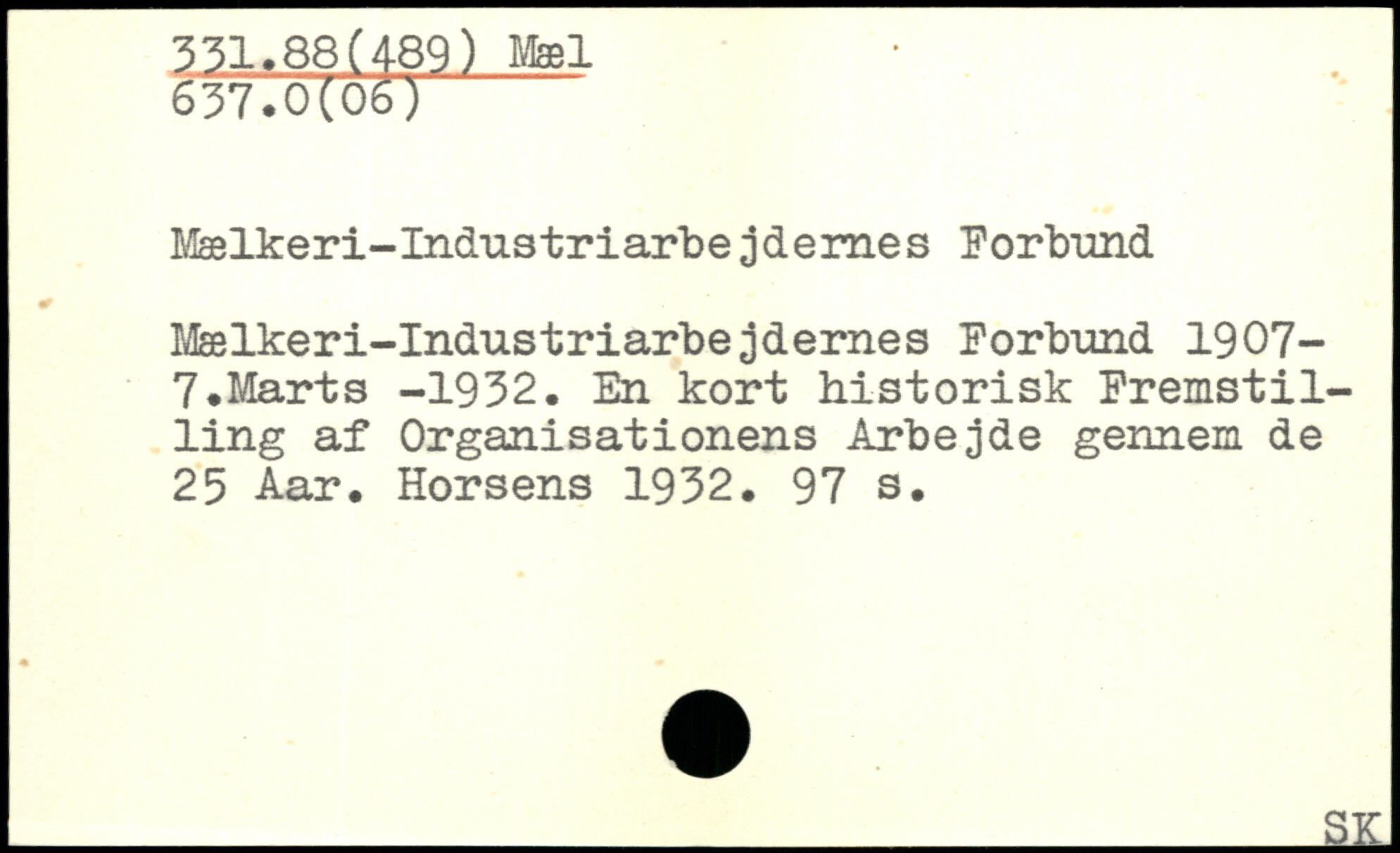 Mælkeri-Industriarbejdernes Forbund Mælkeri-Industriarbejdernes Forbund 1907-7,Marts -1932, En kort historisk Fremst1111ng af Organisationens Arbejde gennem de 25 Aar.