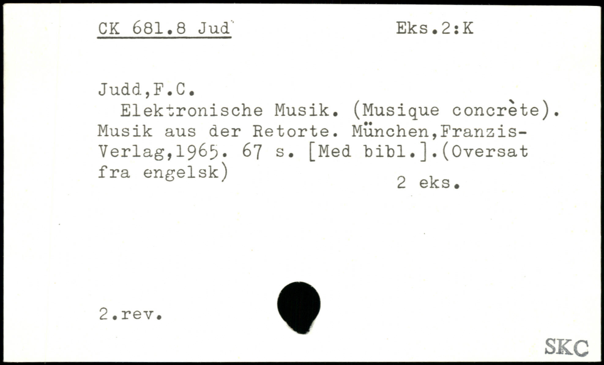 Elektronische Musik. (Musique concrete). Musik aus der Retorte. München,Fransis-Verlag,196^.