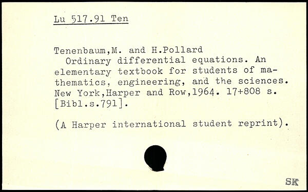 Ordinary differential equations. An elementary textbook for students of mathematics, engineering, and the sciences.