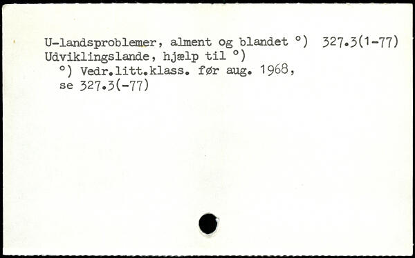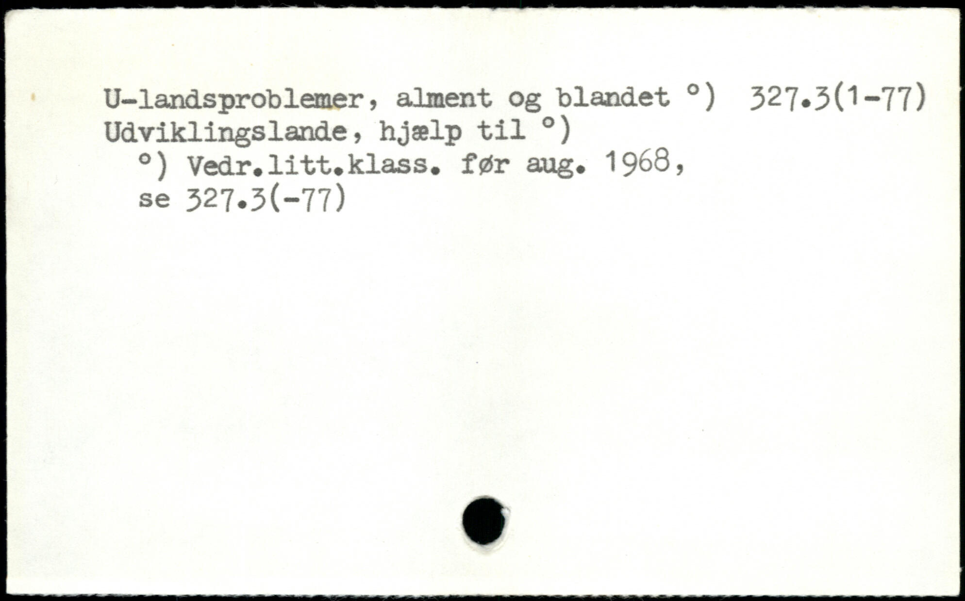 U-landsproblemer, alment og blandet .) 327.3(1-77) Udviklingslande, hjælp til .) .) Vedr.litt.klass. før aag. 1968, se 327.3(-77)