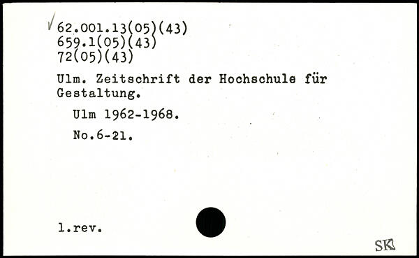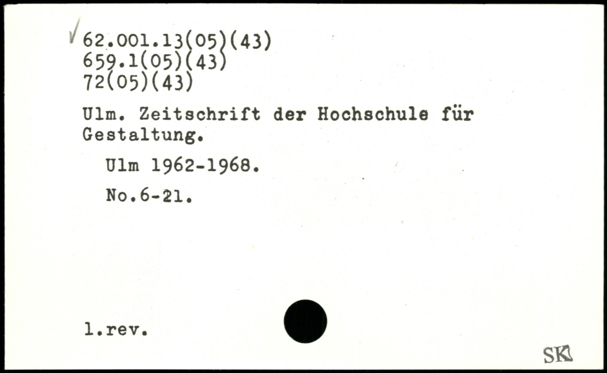 Ulm. Zeitschrift der Hochschule für Gestaltung. Ulm 1962-1968. No.6-21.
