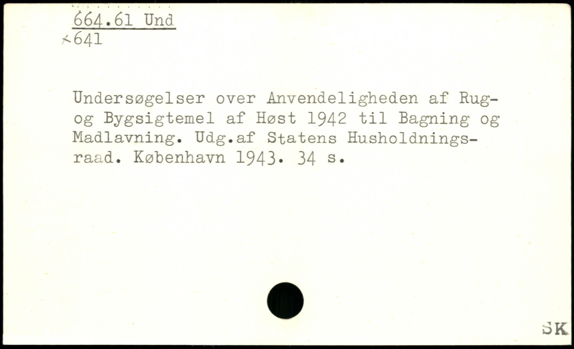 Undersøgelser over Ånvendeligheden af Rug-og Bygsigtemel af Høst 1942 til Bagning og Madlavning. Udg.af Statens Husholdnings-raad.