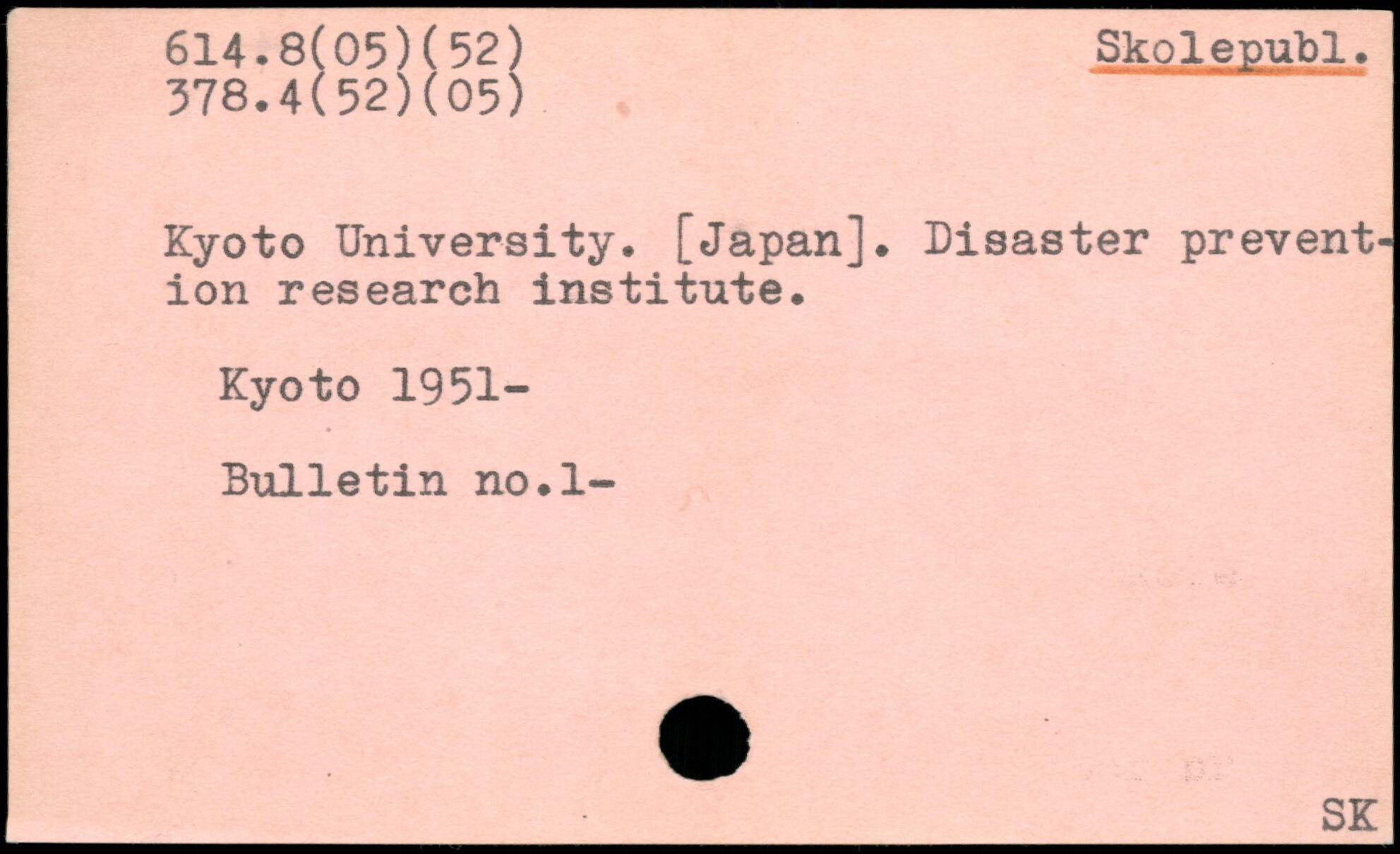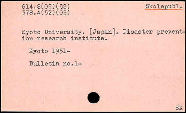 Kyoto University. [Japan]. Disaster prevention research institute. Kyoto 1951- Bulletin no.l-