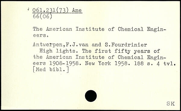 The American Institute of Chemical Engineers , Antv/erpen,F.J.van and S.Fourdrinier High lights. The first fifty years of the American Institute of Chemical Engineers 1908-1958.
