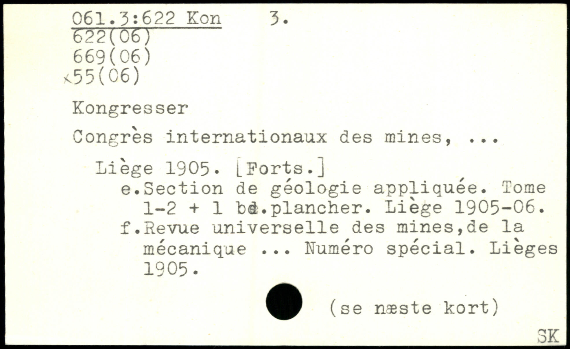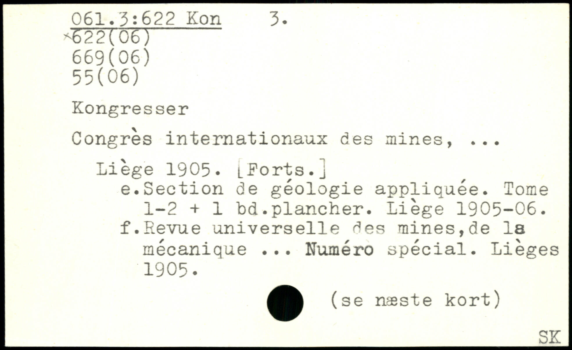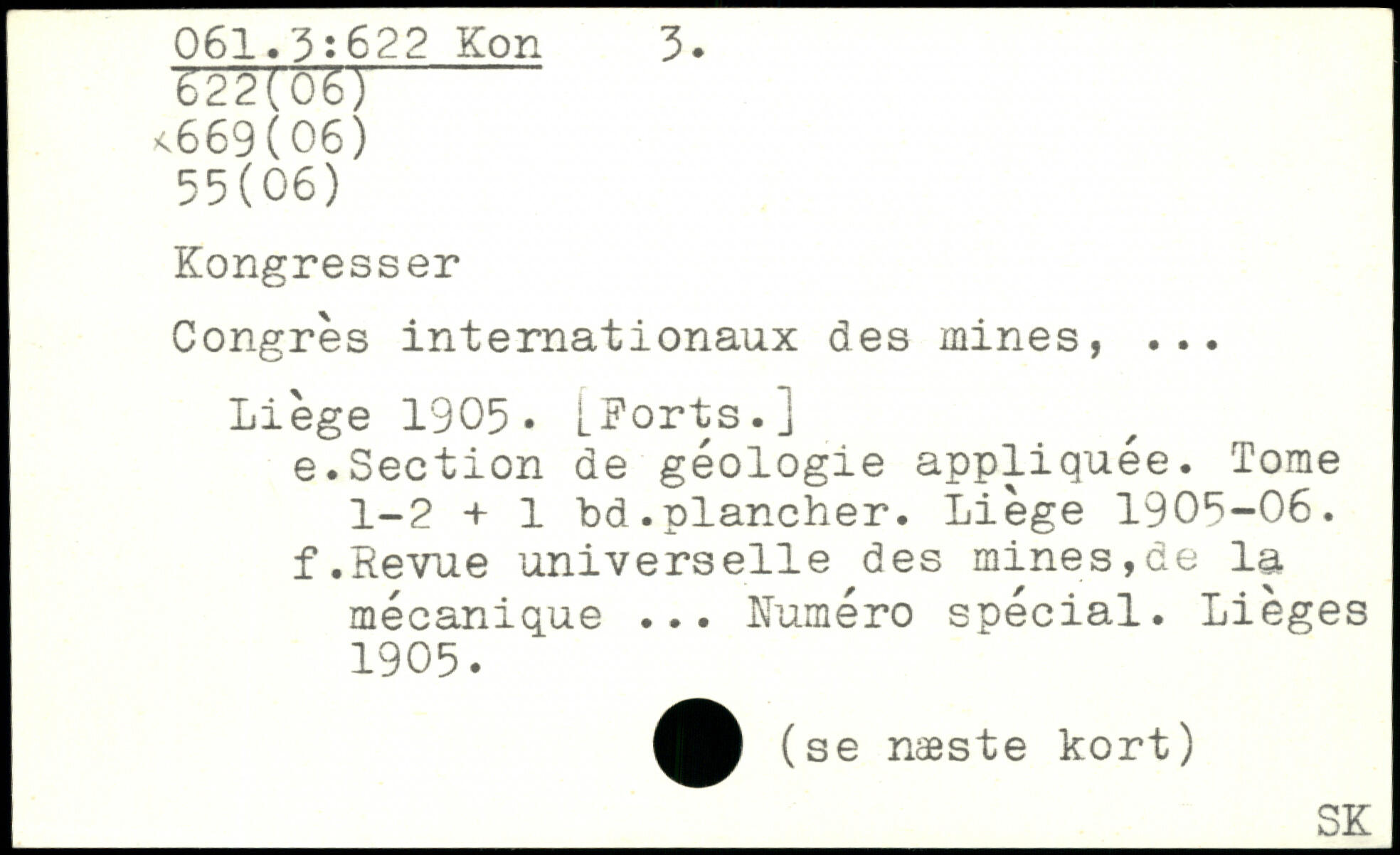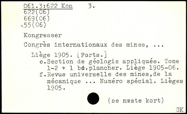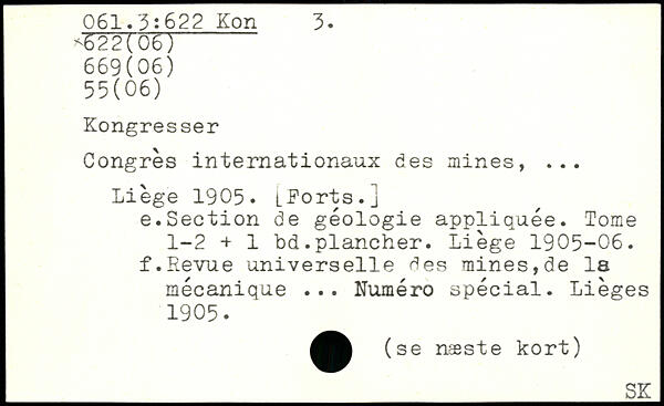 Congrès internationaux des mines, ... Liège 1905. LKorts.j e. Section de géologie appliquée. Tome 1-2 + 1 bd.plancher. Liège 1905-06. f. Revue universelle des mines,de la mécanique ... Numéro spécial. Lièges 1905.
