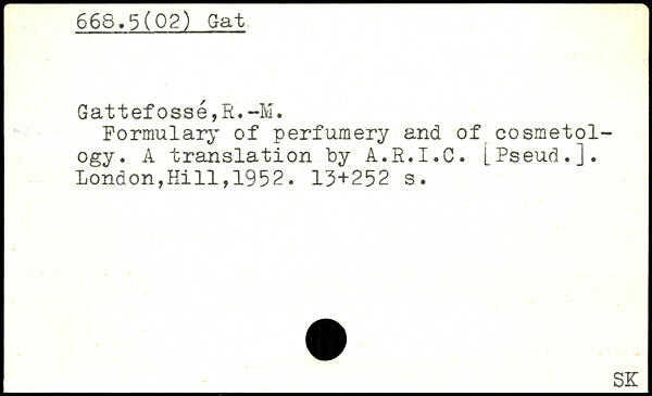 Formulary of perfumery and of cosmetology. A translation "by A.R.I.C.
