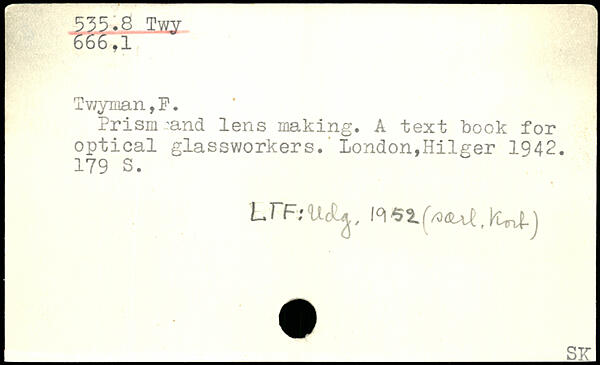 Prism 'and lens making. A text book for optical glassworkers. London,Hilger 1942.
