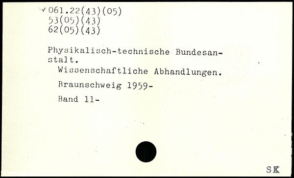 Physikalisch-technische Bundesan-stait. Wissenschaftliche Abhandlungen. Braunschweig 1959-Band 11-