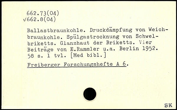 Ballastbraunkohle. Druckdämpfung von Weichbraunkohle. Spülgastrocknung von Schwelbriketts. Glanzhaut der Briketts. Vier Beiträge von E.Rammler u.a.