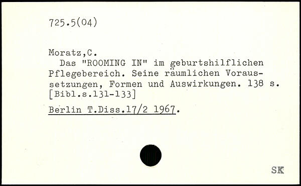 Das "ROOMING IN" im geburtshilflichen Pflegebereich. Seine räumlichen Voraussetzungen, Formen und Auswirkungen.