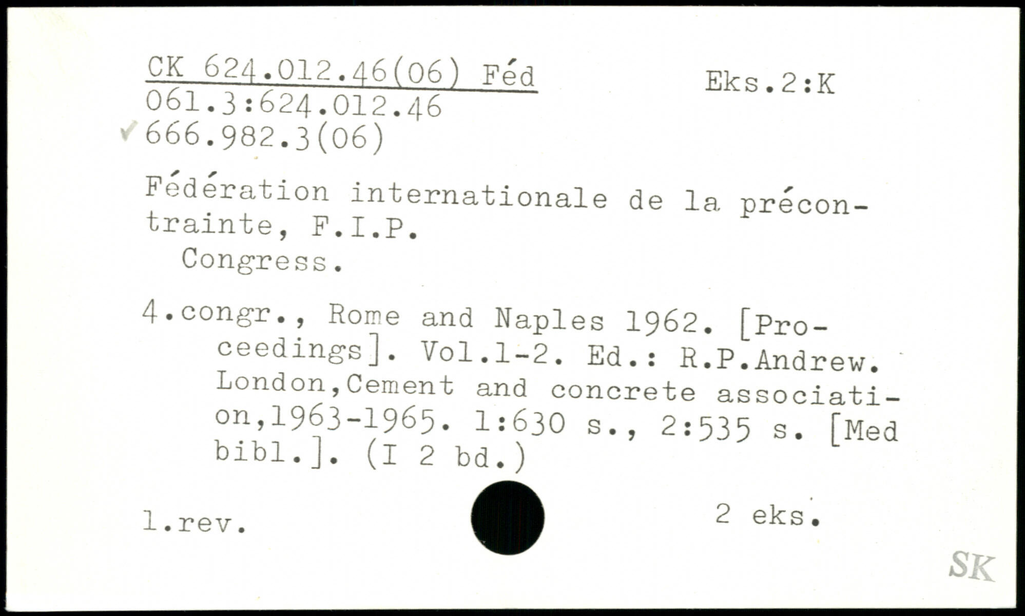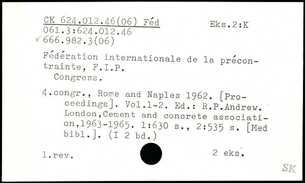 Fédération internationale de la précontrainte, F.I.P. Congress. 4.congr., Rome and Naples 1962. [Pro-ceedings].