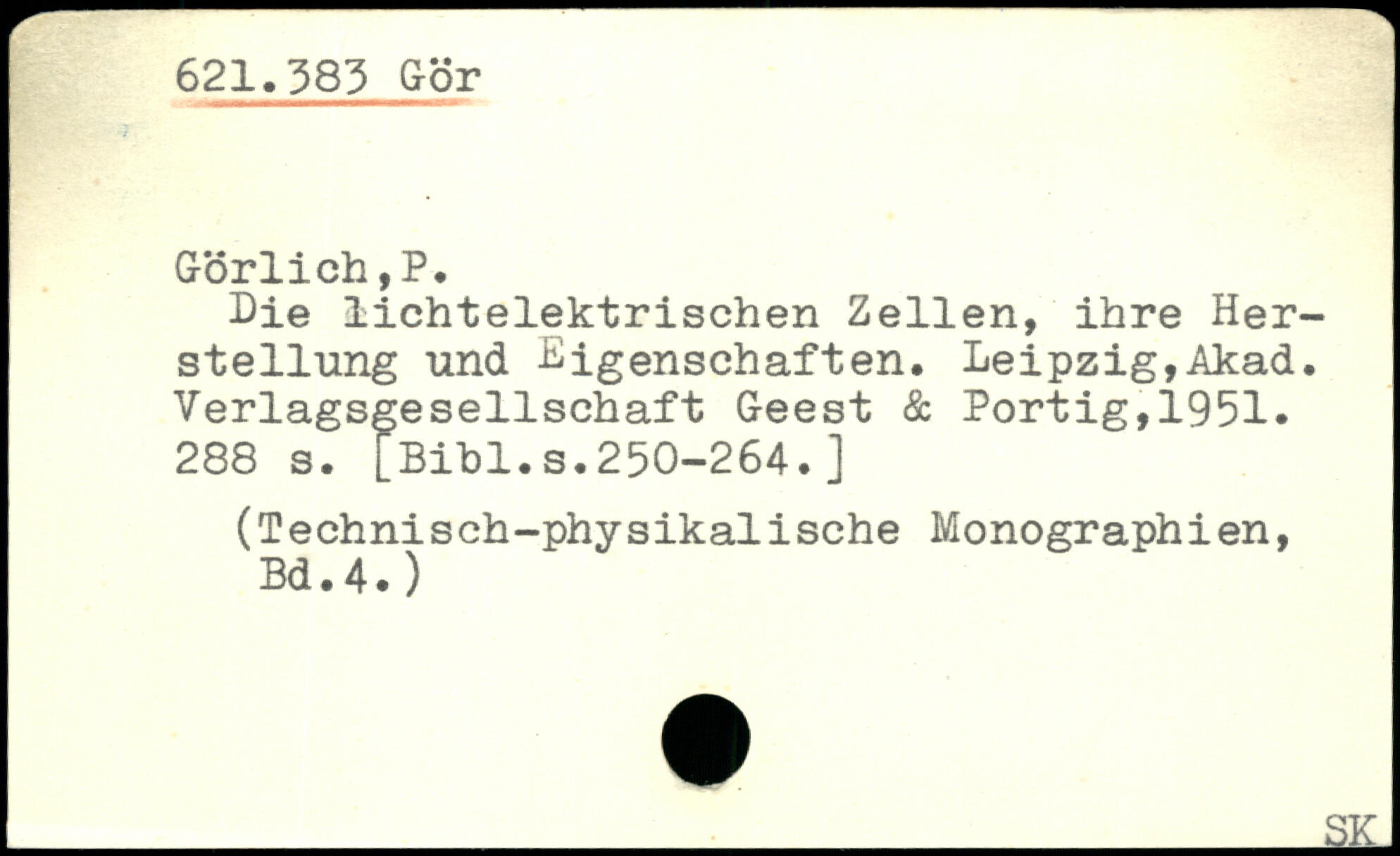 Die lichtelektrischen Zellen, ihre Herstellung und Eigenschaften. Leipzig,Akad. Verlagsgesellschaft Geest & Portig,1951.