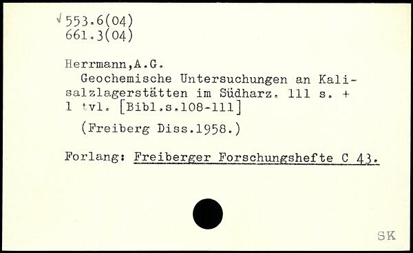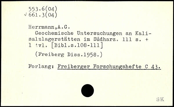 Geochemische Untersuchungen an Kalisalzlagerstätten im Südharz