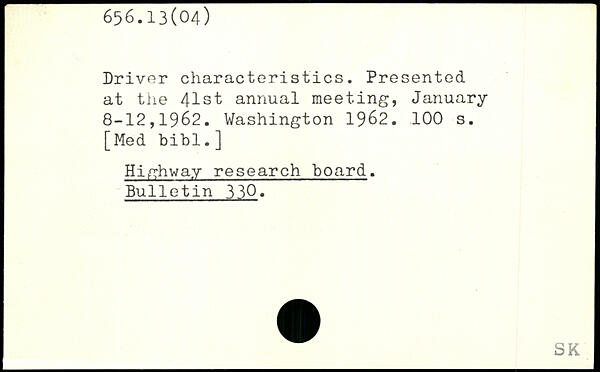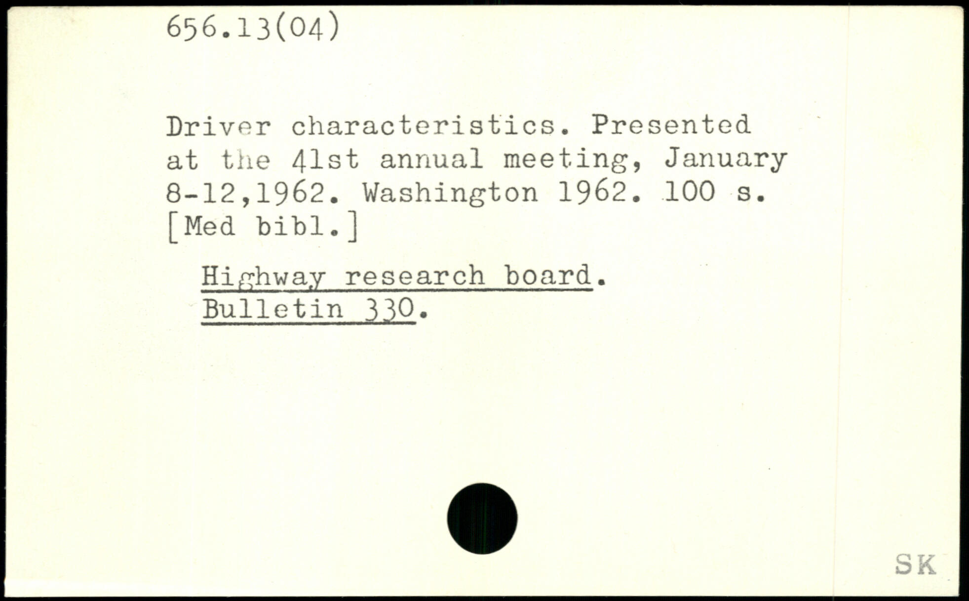 Driver characteristics. Presented at the 41st annual meeting, January 8-12,1962.