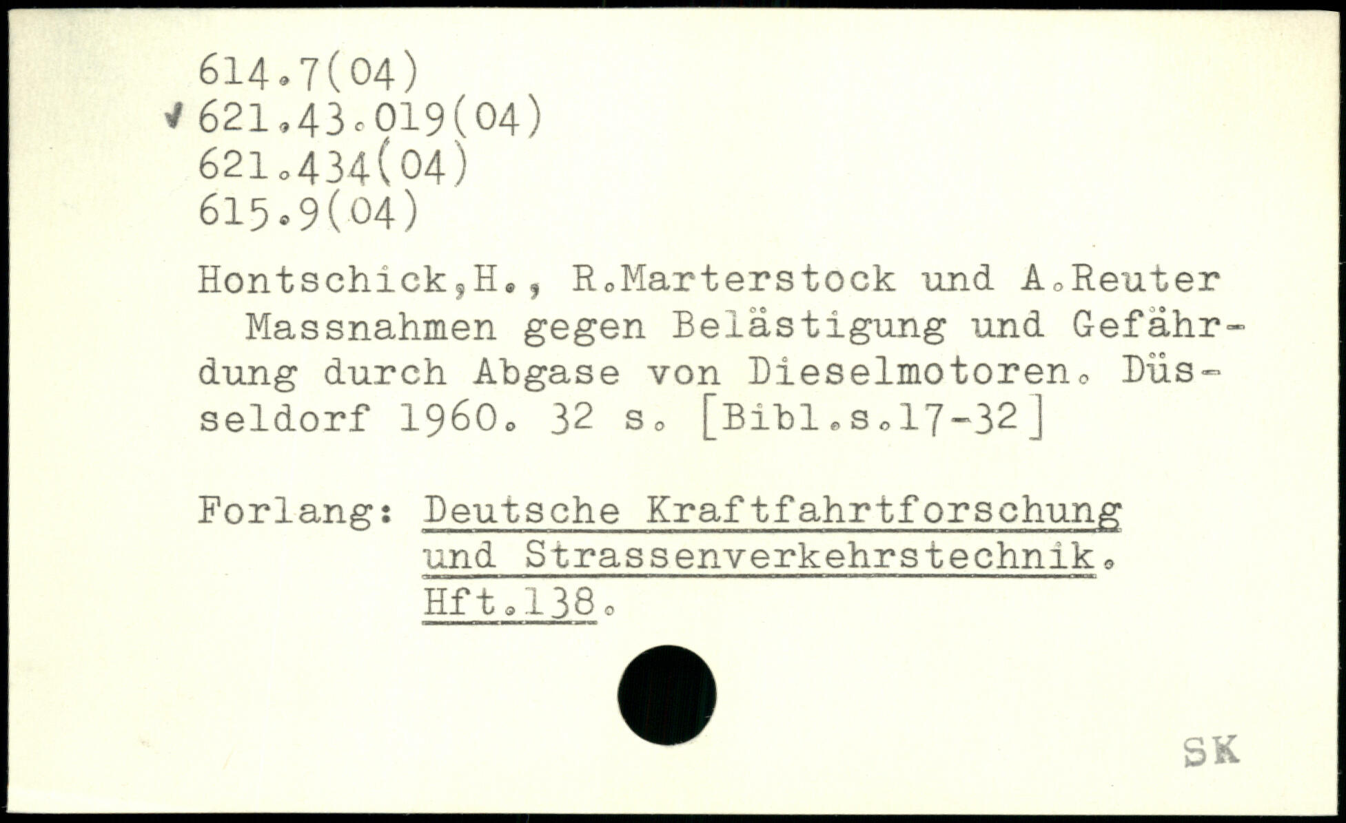 Hontschick^H., RoMarterstock und AoReuter Massnahmen gegen Belästigung und Gefährdung durch Abgase von Dieselmotoren, Düsseldorf 1960o