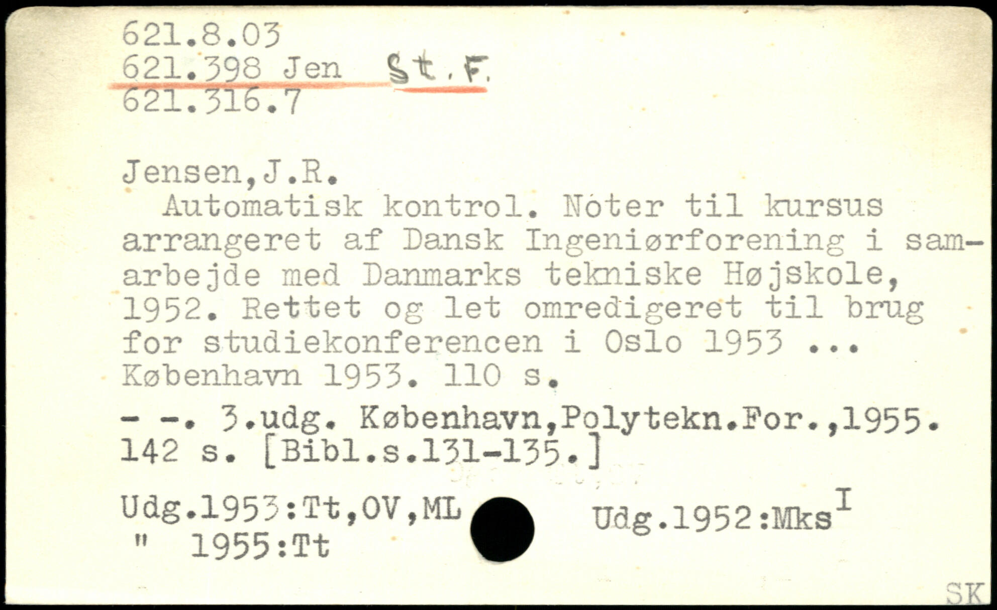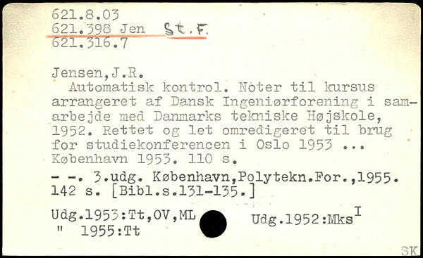 Automatisk kontrol. Koter til kursus arrangeret af Dansk Ingeniørforening i samarbejde med Danmarks tekniske Højskole, 1952. Rettet og let omredigeret til brug for studiekonferencen i Oslo 1953 ...
