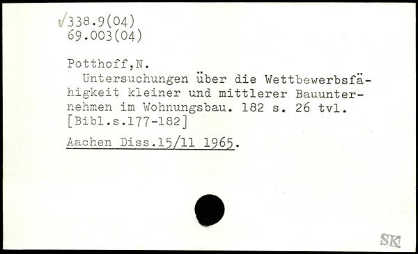 Untersuchungen über die Wettbewerbsfähigkeit kleiner und mittlerer Bauunternehmen im Wohnungsbau.
