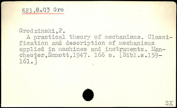 A practical theory/ ox mechanisms. Glassification and description of mechanisms applied in machines and instruments.