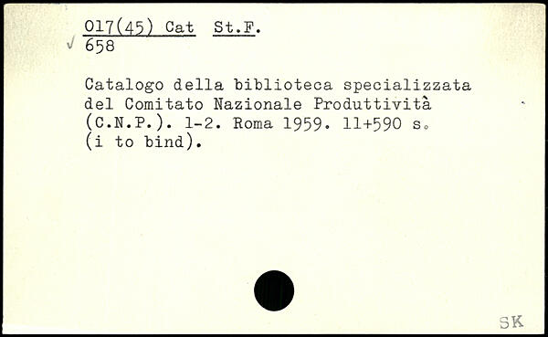 Catalogo della biblioteca specializzata del Comitato Nazionale Produttività (C.N.P.). 1-2.